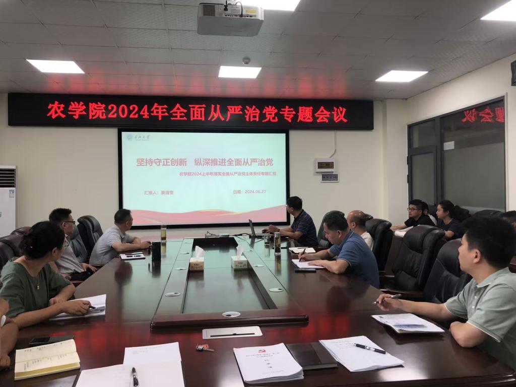 为贯彻落实全面从严治党主体责任,让遵规守纪深入公司各个地方,5月27日上午,公司在农科大楼3064会议室开展本学期全面从严治党专题会议。会议由党委书记姜清奎主持,公司领导班子成员、公司党委委员、各党支部书记及各科室负责人参会。