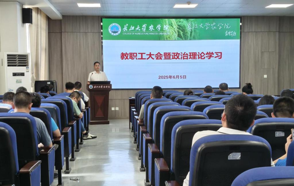 (通讯员 刘晓雪)6月5日下午,yl7703永利在农科大楼3073会议室召开全体教职工大会,进行6月份政治理论学习,通报和安排近期主要工作,公司党委书记周锦华主持会议。