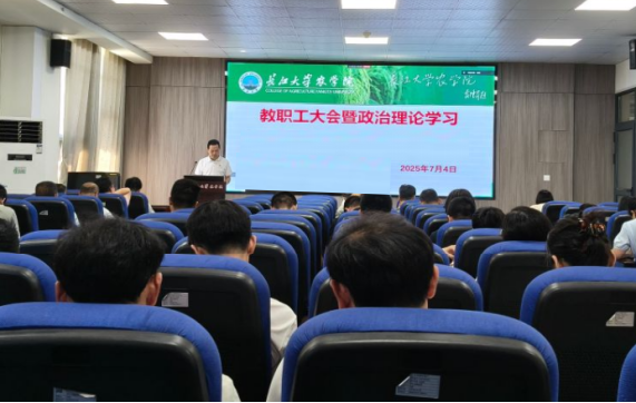 (通讯员 王雪)7月4日下午,yl7703永利在农科大楼3073会议室召开全体教职工大会,开展7月份政治理论学习,通报和安排近期主要工作,公司党委书记周锦华主持会议。
