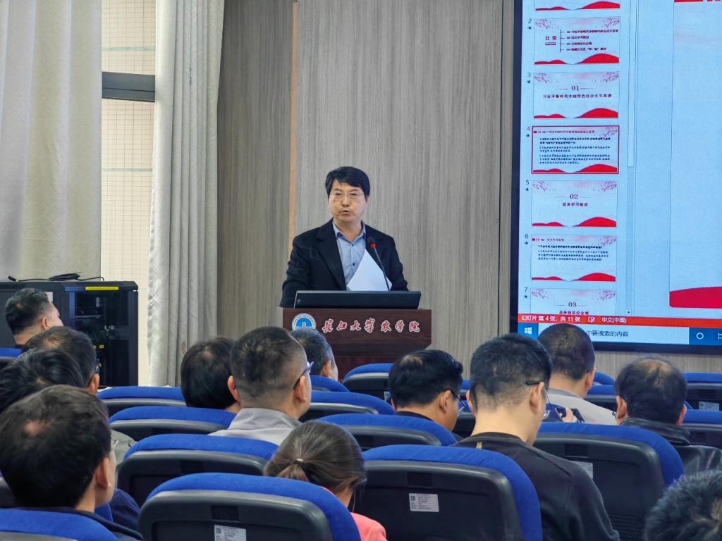 2022年11月24日下午,公司党委书记姜清奎在农科大楼3073会议室主持召开11月份全院教职工政治理论学习会,全体教职工参加学习。