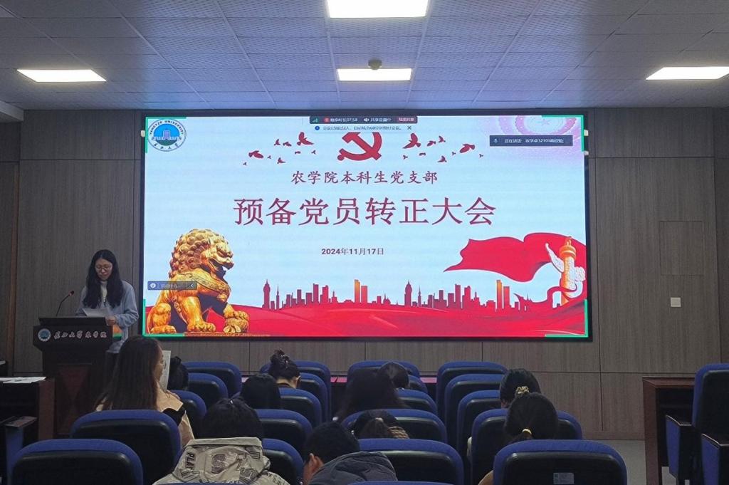 (通讯员 武芊睿)为加强党员队伍建设,进一步加强组织凝聚力,11月17日,yl7703永利本科生党支部在农科大楼3073召开2024年下半年预备党员转正大会,活动以线上线下相结合的方式开展,讨论预备党员王思宇等5名同志的转正问题。应到会党员27名,实到会20名,应到会有表决权的正式党员9人,实到会7名,超过半数,符合党员发展流程。此次会议由支部副书记高欣怡主持。