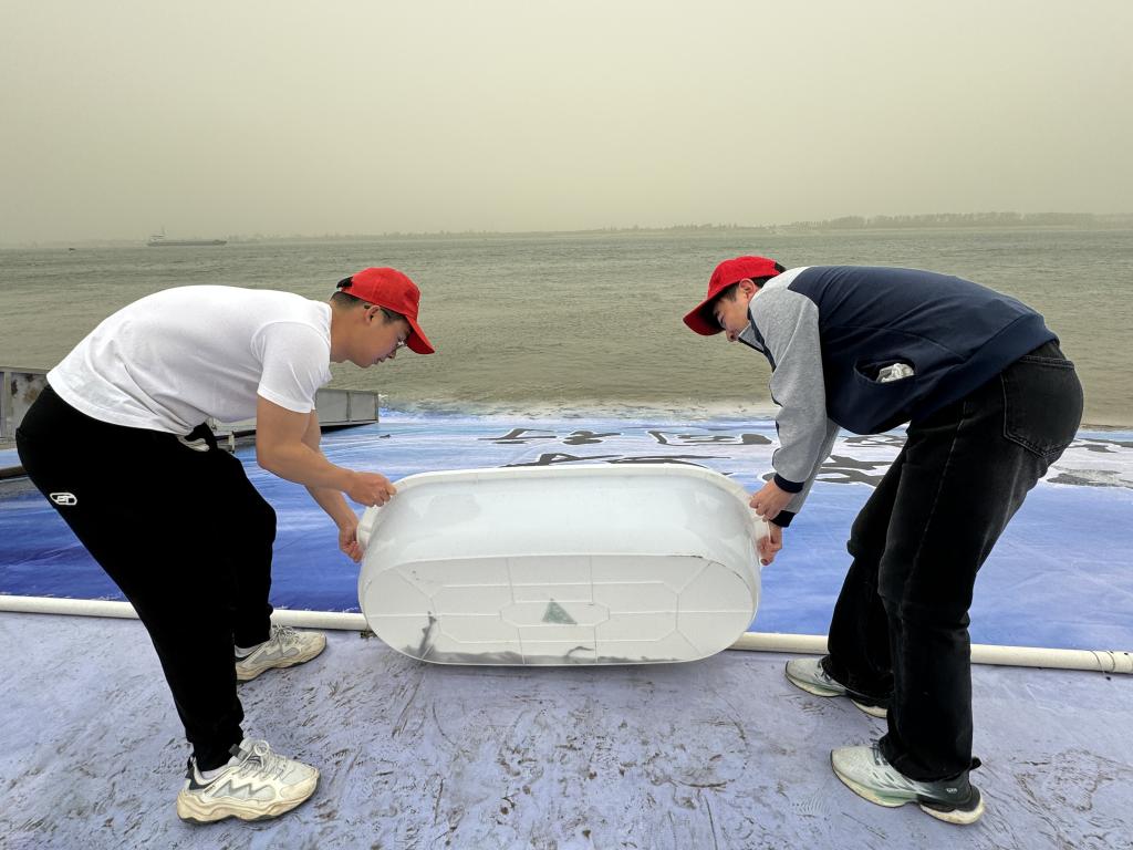 凌晨四点,夜色还未完全褪去,此时公司研究生第二党支部成员便已集合完毕,乘车前往中国水产科学研究经理江水产研究所太湖试验场。在水产专家的现场指导下,支部成员协同工作人员,耗时2小时,将20万尾人工繁育的中华鲟鱼苗从孵化车间安全转运至保温渔箱,前往长江边放流。放流现场,骤降的气温与凛冽的江风为放流工作带来了巨大挑战,支部成员依旧干劲十足,圆满完成中华鲟放流工作。