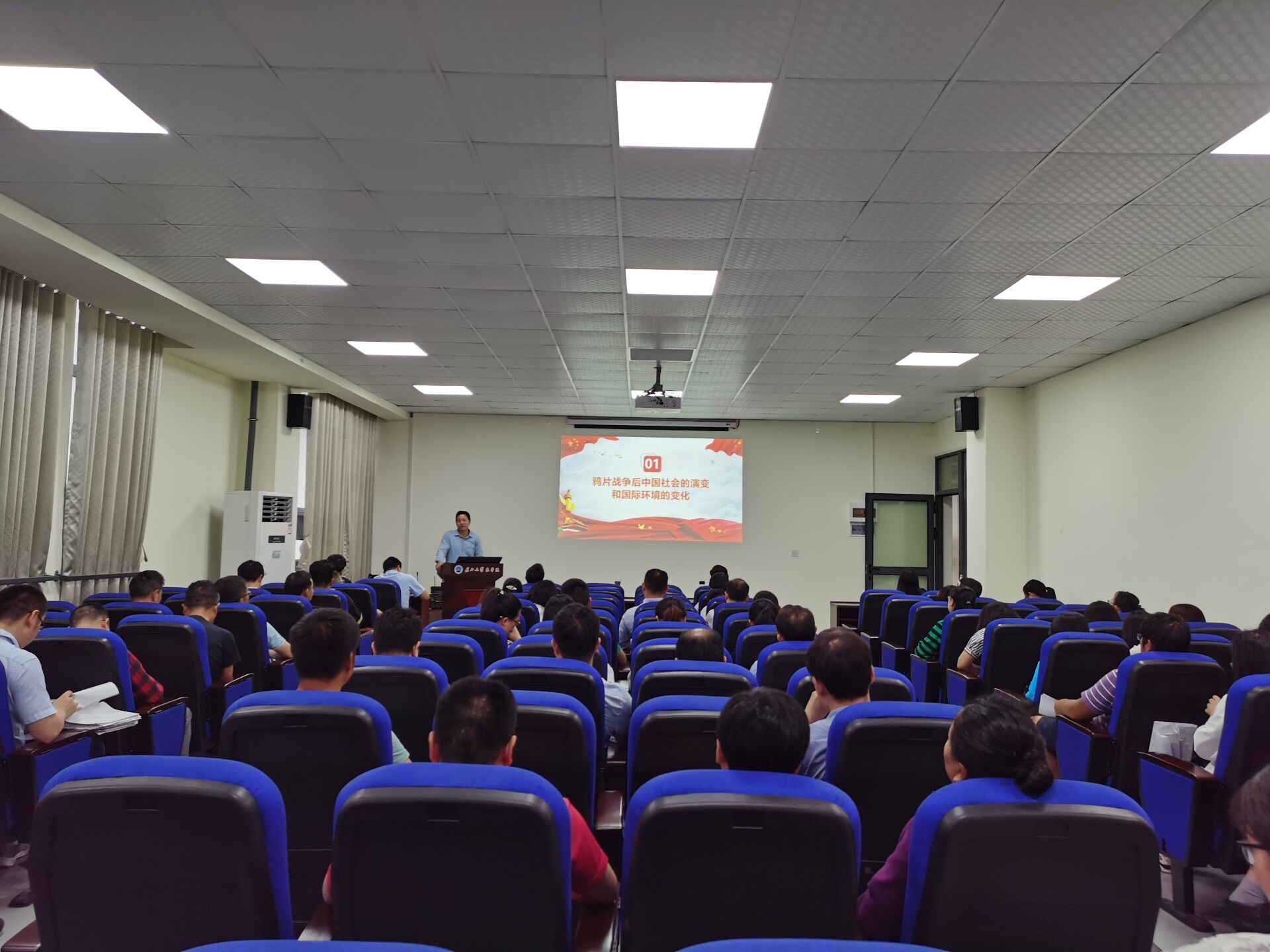 为高标准、高质量开展好党史学习教育,引导全院师生学党史、悟思想、办实事、开新局,2021年5月13日,yl7703永利分党委书记冯发明在农科大楼3073室为公司全体教职工讲授党史学习教育专题党课。
