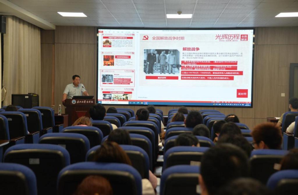 会议伊始,姜书记用自己关于担任公司招聘政治辅导员评委的故事引出对党史故事的介绍。姜书记向学员们介绍了党史的发展脉络,即马克思主义在中国的传播,发展,再到与中国国情的完美结合的过程。姜书记从新民主主义革命时期、社会主义革命和建设时期、改革开放和社会主义现代化建设时期展开详细论述,其中包括打破封建思想桎梏的新文化运动、革命高涨起点的国共第一次合作、中国共产党开展的19次全国代表大会等重要的历史节点,同时穿插了不少党内英雄人物的故事。在讲到重要内容的时候,姜书记贴心提醒大家作好记录,认真学习。临近末尾,姜书记指出我们当代青年应该一直秉承以人民为中心、为人民谋福利的初心,为实现中华民族伟大复兴的中国梦贡献出青年一代该有的一份力量。