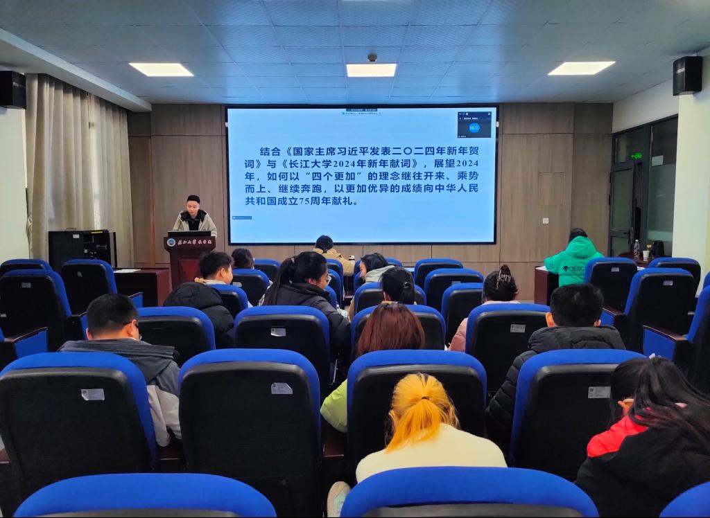 接着,全体党员以“结合《国家主席习近平发表二〇二四年新年贺词》与《yl7703永利2024年新年献词》,展望2024年,以“四个更加”的理念继往开来、乘势而上、继续奔跑,以更加优异的成绩向中华人民共和国成立75周年献礼。”为主题展开研讨,严晓羽同志认为作为新时代的党员,我们的理想信念要更加坚定,纪律意识要更加增强,思想要加牢固,工作作风更加务实。韩晓文同志认为在座的研究生们要砥砺前行,继续奋斗,珍惜在校的学习机会,不要虚度光阴。王思婷同志认为除平时的科研生活以外,需关注一些国家大事,了解国际形势,在平时工作中用一些创新性的方法,取得创新性的成果。