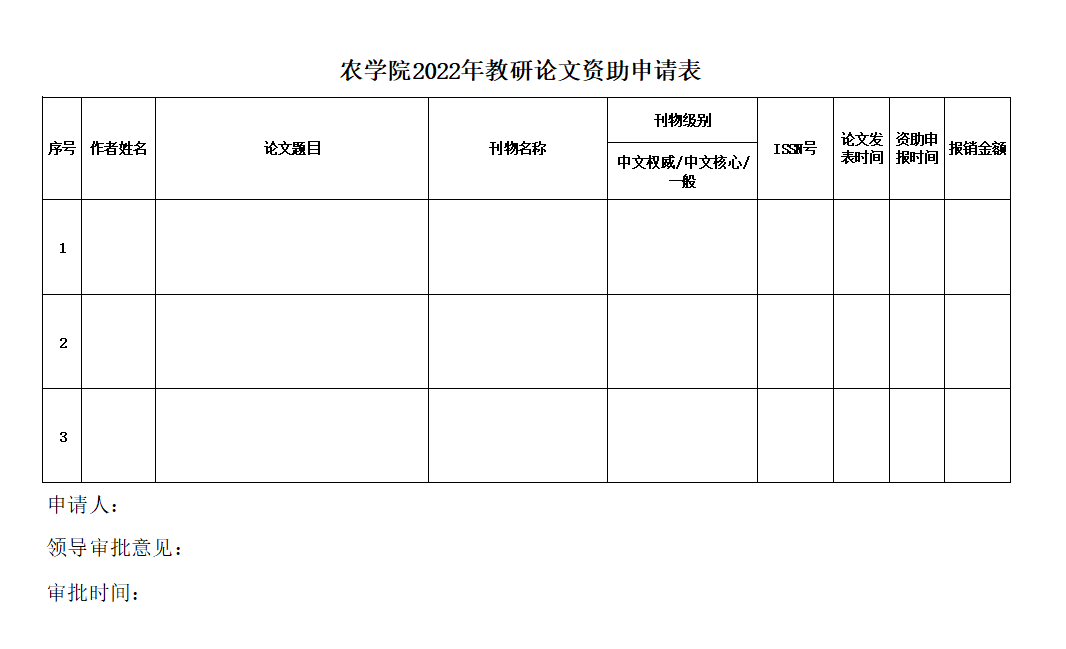 2022年教研论文资助申请表