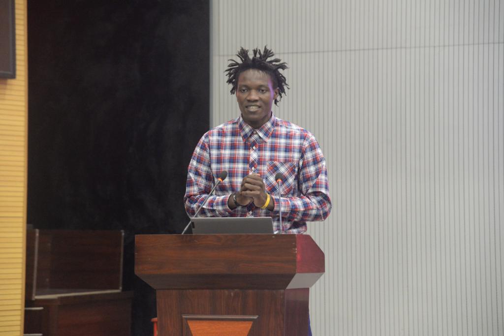 来自喀麦隆的职工代表董其琛用流利的中文对新同学表示热烈欢迎,他分享了自己远洋留学的经历和对农学的热爱,并代表职工群体对公司师生表示感谢。
