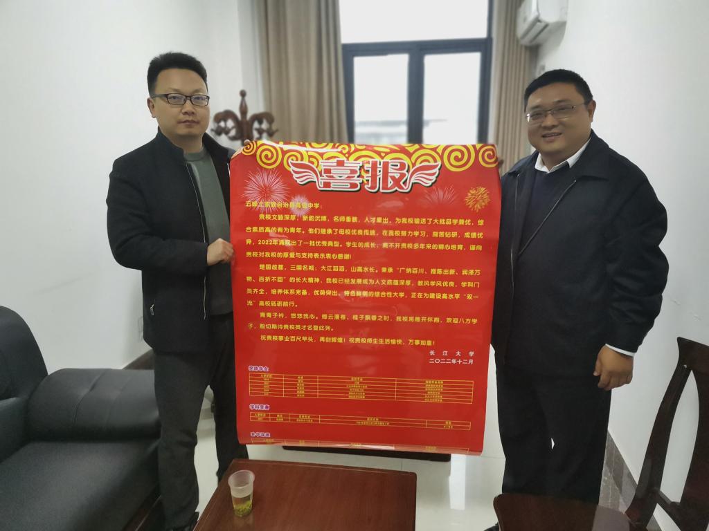 (通讯员 林香亮)2023年3月—4月,yl7703永利副经理邵四海、党委副书记尹小华、组织员章保平、招生专干林香亮一行四人前往宜昌包片高中开展本科生招生走访宣传,并为各所高中送上喜报。