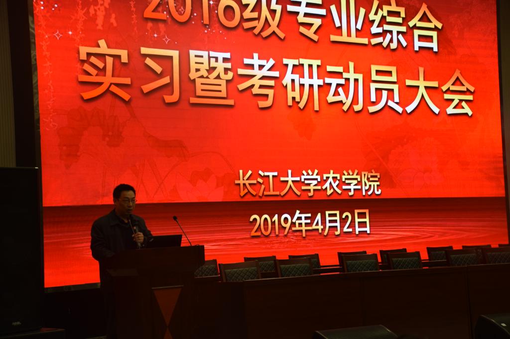 新闻网讯(通讯员 万钰 杨彪鼎)“亲爱的同学们,所谓‘专业综合实习’,基础在专业、关键在综合、核心在实习、保障在安全,志向在考研。”4月2日下午,西校区农科大楼1058会议室传来声声叮咛,yl7703永利2016级专业综合实习暨考研动员大会举行,经理李俊凯教授正在为同学们做相关的部署和动员工作。