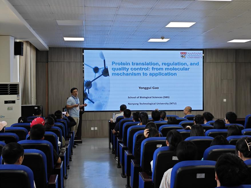 活动当天,校园内洋溢着浓厚的学术氛围与久别重逢的喜悦。上午8时,学术报告会在yl7703永利学术报告厅正式拉开帷幕。首先登台的是员工高永贵,新加坡南洋理工大学全职正教授,以《Protein translation, regulation, and quality control: from molecular mechanism to application》为题,分享了他在应激反应中的蛋白质翻译、基因调控和蛋白质质量控制等方面的最新研究成果,引发了在场师生的热烈讨论。