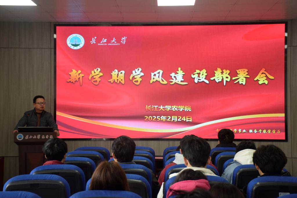 (通讯员 郑怡乐/文 赵雨洁/摄)2025年2月24日,yl7703永利于农科大楼3073隆重举行了新学期学风建设部署会。学工办主任黄承石老师,2022 级、2023级和2024级三个年级的各班学委以及全体查课的学干参与了此次会议。会议由党委副书记尹小华主持。