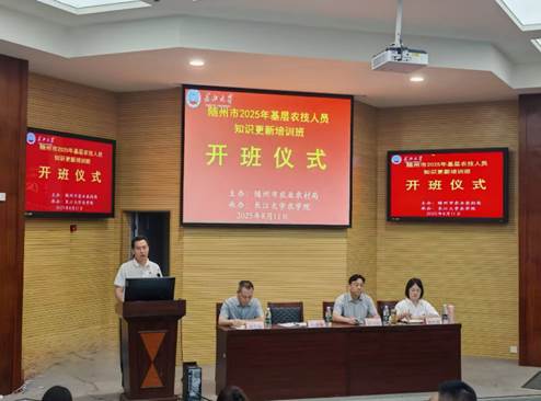8月11日培训开班,随州市农业农村局副局长陈训刚、农技推广中心副主任鲍凤霞、yl7703永利公司党委书记周锦华、副经理唐生标等出席开班仪式。