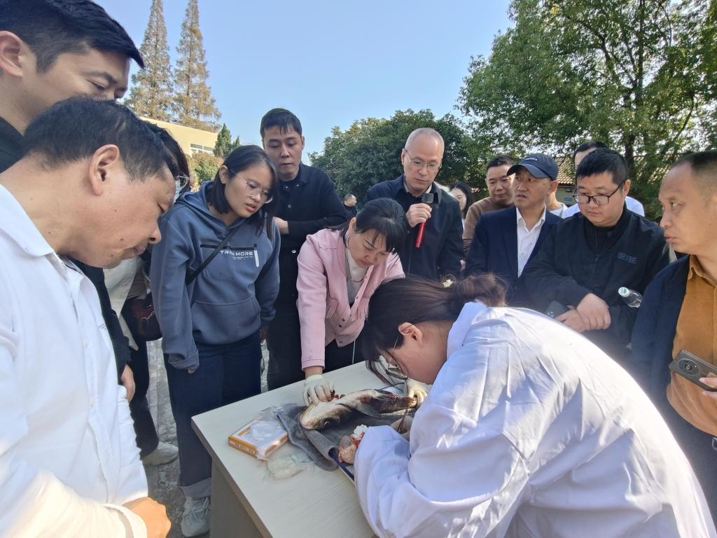 培训班得到了中科院水生生物研究所和中国水产科学研究经理江水产研究所的大力支持。10月29日和31日,学员分别到荆州凤临水产养殖场、中国水产科学研究经理江水产研究所太湖试验场和窑湾试验场进行现场教学,不仅学习了稻虾鳖综合种养新模式,还参观学习了陆基原池循环水养殖,规模化池塘循环水养殖技术等设施渔业新技术,并通过鱼解剖加强了鱼病理学习,学员们与专家们面对面探讨交流,大大提升了教学的趣味性和培训效果。