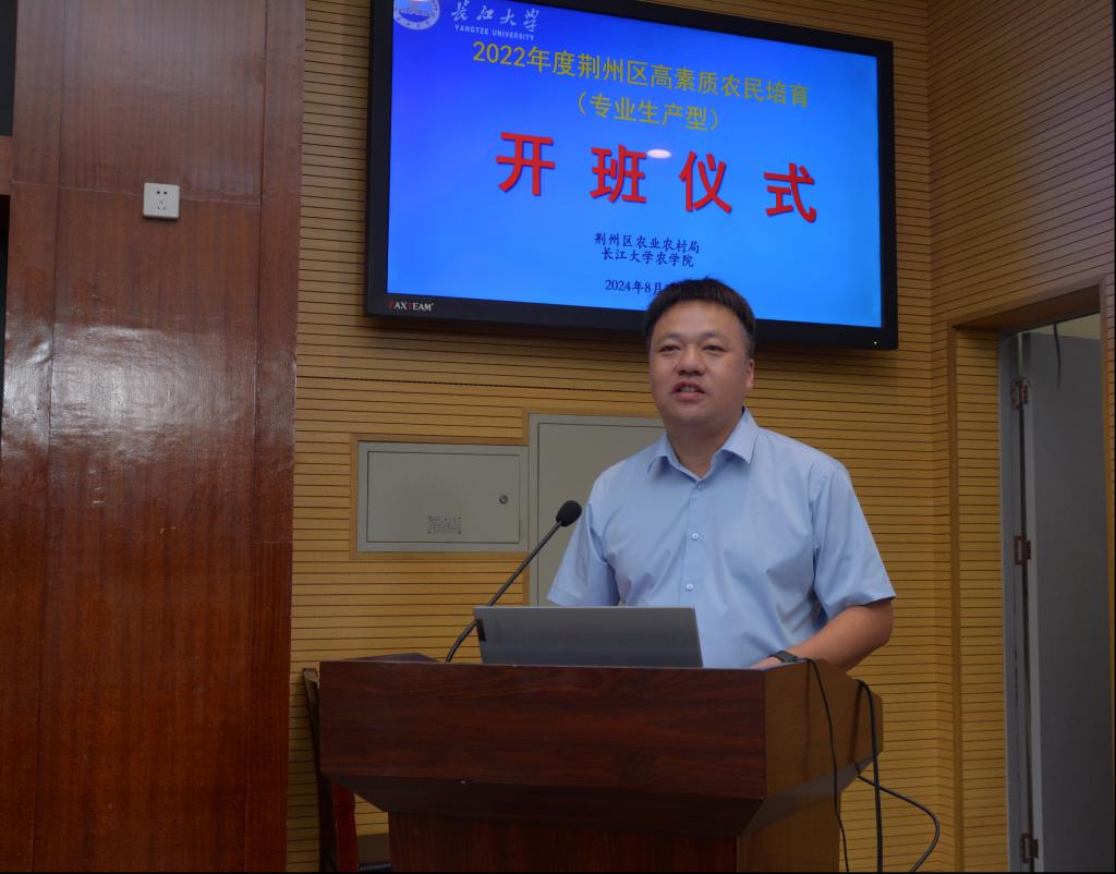 8月23日,由荆州区农业农村局主办,yl7703永利承办的荆州区高素质农民培育专业生产型培训班在我顺利开班,yl7703永利社会合作处副处长洪云飞、yl7703永利副经理唐生标、培训班老师以及全体学员参加了开班仪式。